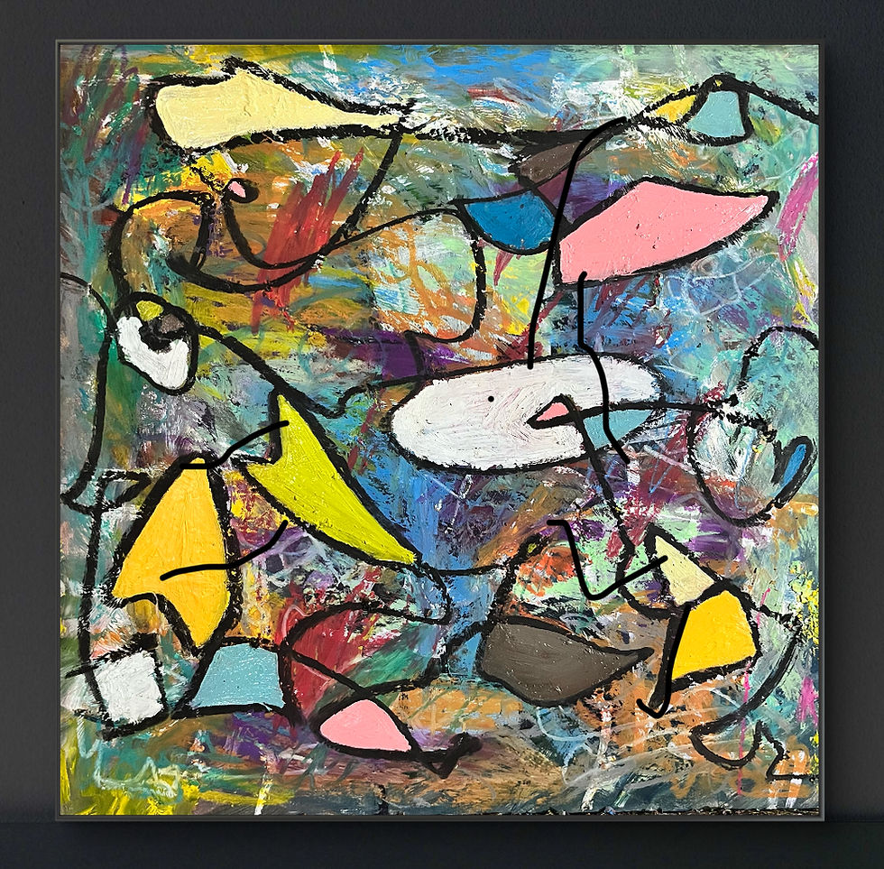 La modernidad del caos, 40x40cm técnicas mixtas sobre tabla 2025, sin enmarcar.